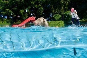 Dieses Foto entstand beim 4. Hundeschwimmen im Sommerbad Gauting am 21.09.2025.