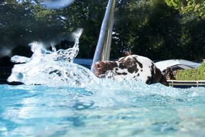 Dieses Foto entstand beim 4. Hundeschwimmen im Sommerbad Gauting am 21.09.2025.