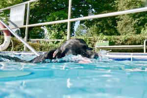 Dieses Foto entstand beim 4. Hundeschwimmen im Sommerbad Gauting am 21.09.2025.