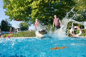 Dieses Foto entstand beim 4. Hundeschwimmen im Sommerbad Gauting am 21.09.2025.